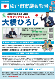 11月22日より、会派まつどみらいに新しい仲間(柿沼議員)が増え 5人の会派でスタートいたします。 柿沼議員より会派入りの要請があり、幾度と […]